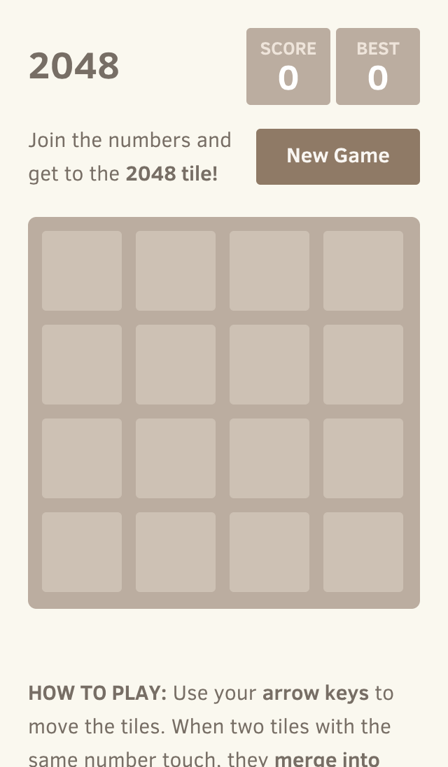 使用你键盘上的 WASD 或方向键 移动方块。当两个具有相同数字的方块接触时,它们会合并为一个方块!